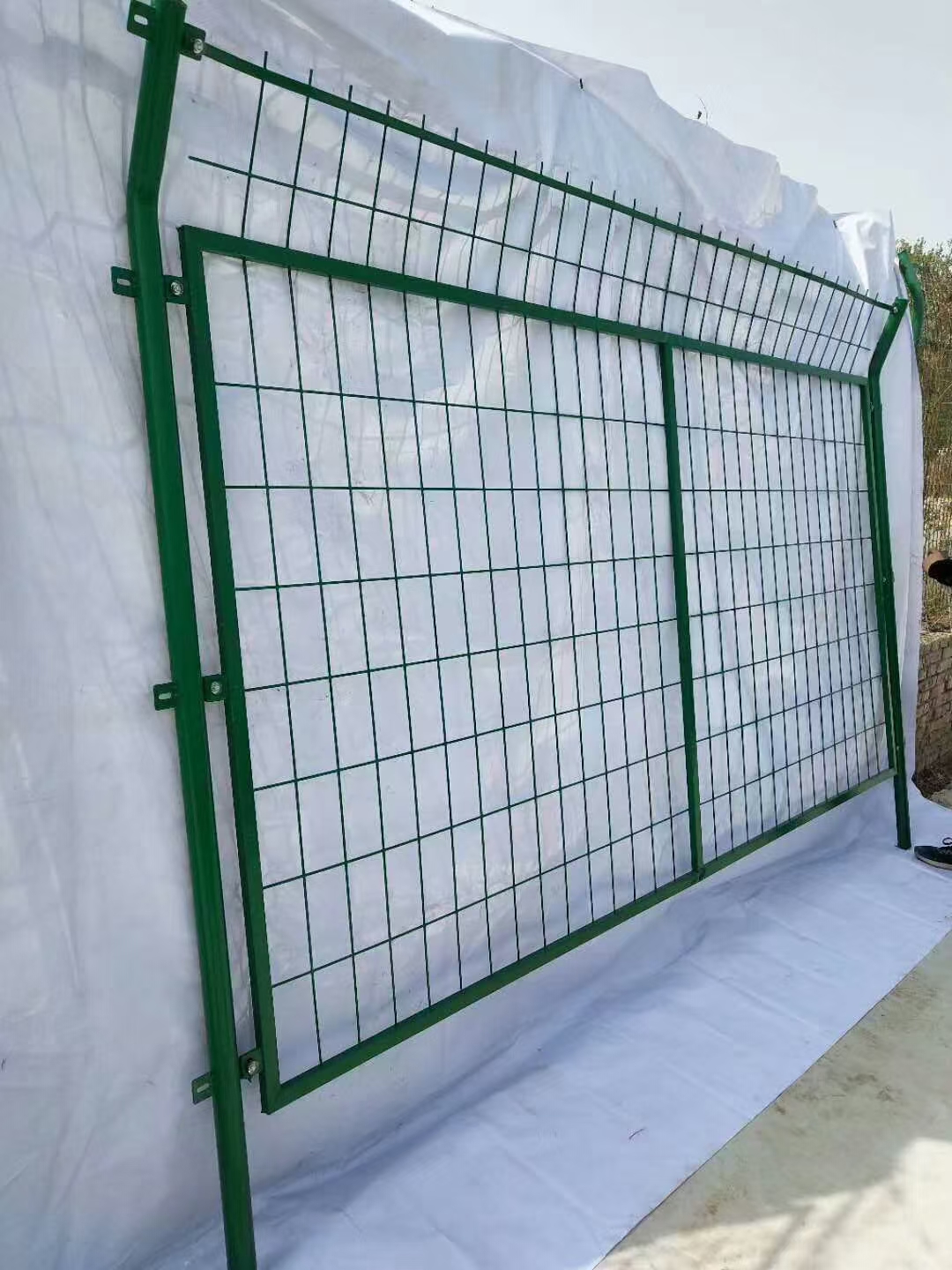 水池護(hù)欄網(wǎng)發(fā)貨前給客戶安裝演示一下
