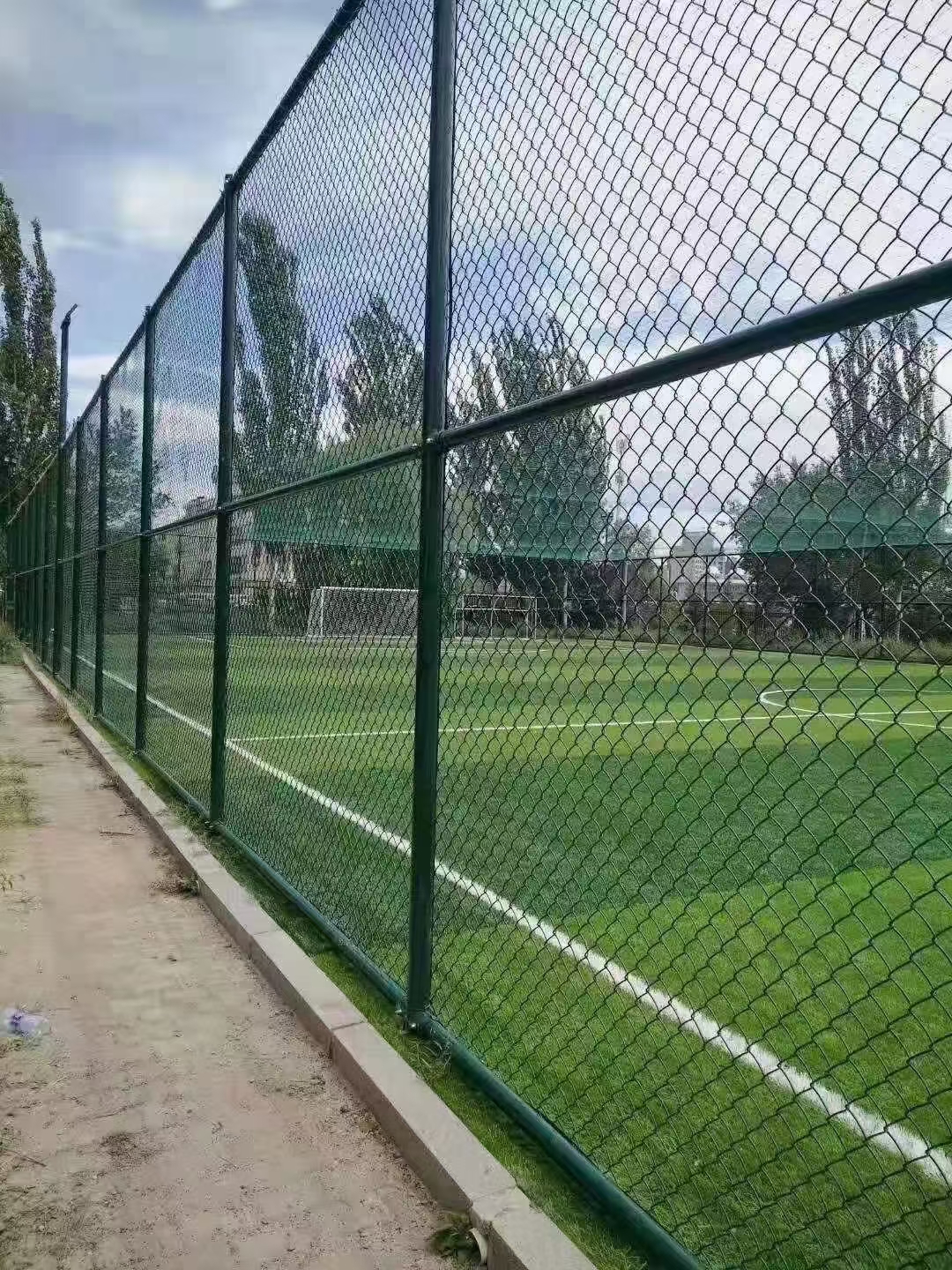 球場圍網(wǎng)的作用就是隔離防護球類產(chǎn)品在應用的時候,不小心跑到場外去。隔離防護給場外的人員及車輛造成危險。所以球場圍網(wǎng)的網(wǎng)片要求網(wǎng)孔不能大了。而且重要的是要有一定的柔軟度。因為有時候人要是闖擊在網(wǎng)面上也給人員一定的緩沖的作用。而且也要恢復到原來的模樣。所以普通的網(wǎng)片不能達到這個效果。從而勾花網(wǎng)的特性可以滿足球場圍網(wǎng)的要求,所以球場圍網(wǎng)采用勾花網(wǎng)作為網(wǎng)片進行使用。