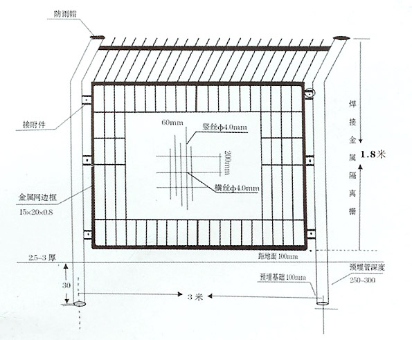 長度根據(jù)網(wǎng)片長度量身定制,預(yù)埋深度一般為30cm, 也可以用膨脹螺絲固定在水泥面上。