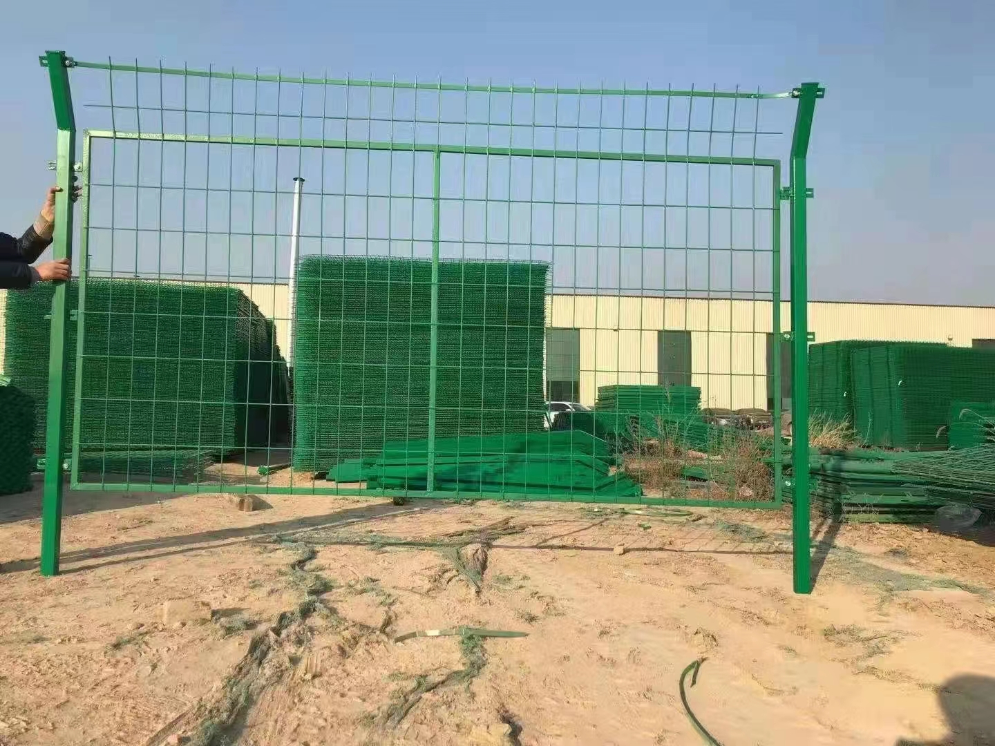 光伏項(xiàng)目最近幾年開(kāi)工建設(shè)的有很多,那么光伏圍欄網(wǎng)也是光伏項(xiàng)目建設(shè)的一部分。這樣幾年光伏圍欄網(wǎng)的需求也增加了不少,當(dāng)然也有很早以前光伏圍欄網(wǎng)需要更換的。那么光伏圍欄網(wǎng)一般采用什么規(guī)格的護(hù)欄網(wǎng)?經(jīng)常選用的護(hù)欄網(wǎng)有兩種結(jié)構(gòu)的。一種是雙邊護(hù)欄網(wǎng)結(jié)構(gòu),一種是框架護(hù)欄網(wǎng)結(jié)構(gòu)。光伏圍欄網(wǎng)的高度一般都是在1.8米,絲徑一般在4.0mm-4.5mm之間。網(wǎng)孔根據(jù)業(yè)主方的要求加工。一般的網(wǎng)孔有7.5cm×15cm,8cm×16cm,9cm×17cm。這樣幾種護(hù)欄網(wǎng)的網(wǎng)孔。立柱一般采用50圓管或60圓管作為光伏圍欄網(wǎng)立柱使用。